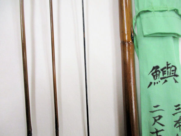 新作 竿昭作 たなご竿 変わり塗り 矢竹 真竹削り穂 三本継ぎ 二尺七寸 竿ケース、竿袋付