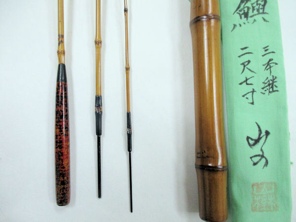 ホーム | 竿昭作 竿孝 高一作 > 竿昭作 和竿新作 竿昭作セカンドブランド 山の たなご竿 黒段巻き 布袋竹印籠継 研ぎ出し握り  三本継ぎ 二尺七寸